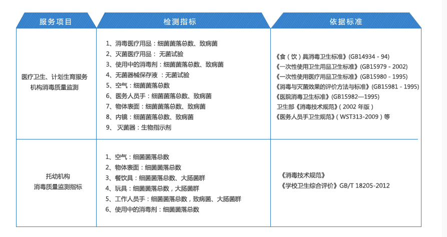 · 检测对象医疗卫生服务机构、计划生育服务机构、托幼机构,消毒产品及服务机构