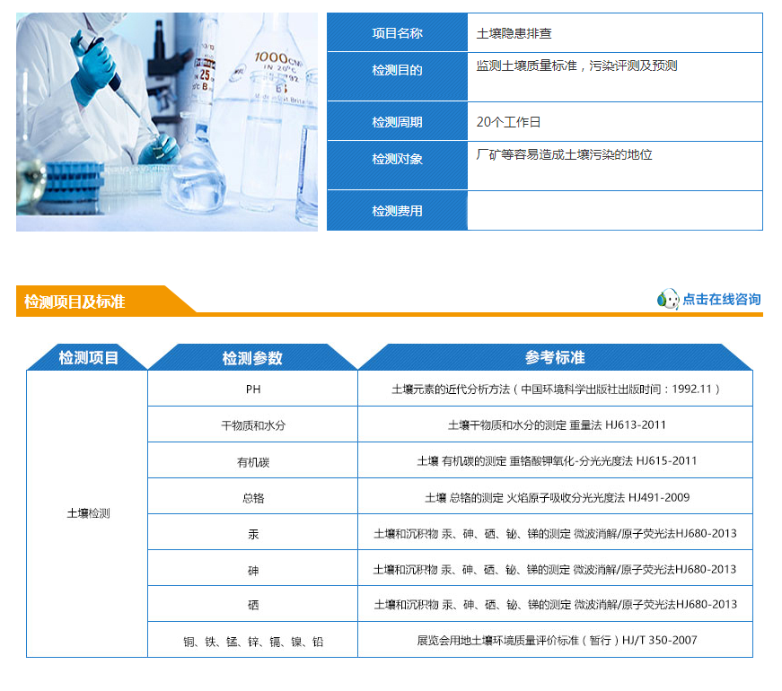 土壤隐患排查检测,通过采用合适的测定方法测定土壤的各种理化性质,铁、锰、总钾、有机质、总氮、有效磷、总磷、水分、总砷、有效硼、氟化物、氯化物、矿物油及全盐量等,达到土壤隐患排查目的,进而对土壤污染源和排放源的正确应对做出判断。